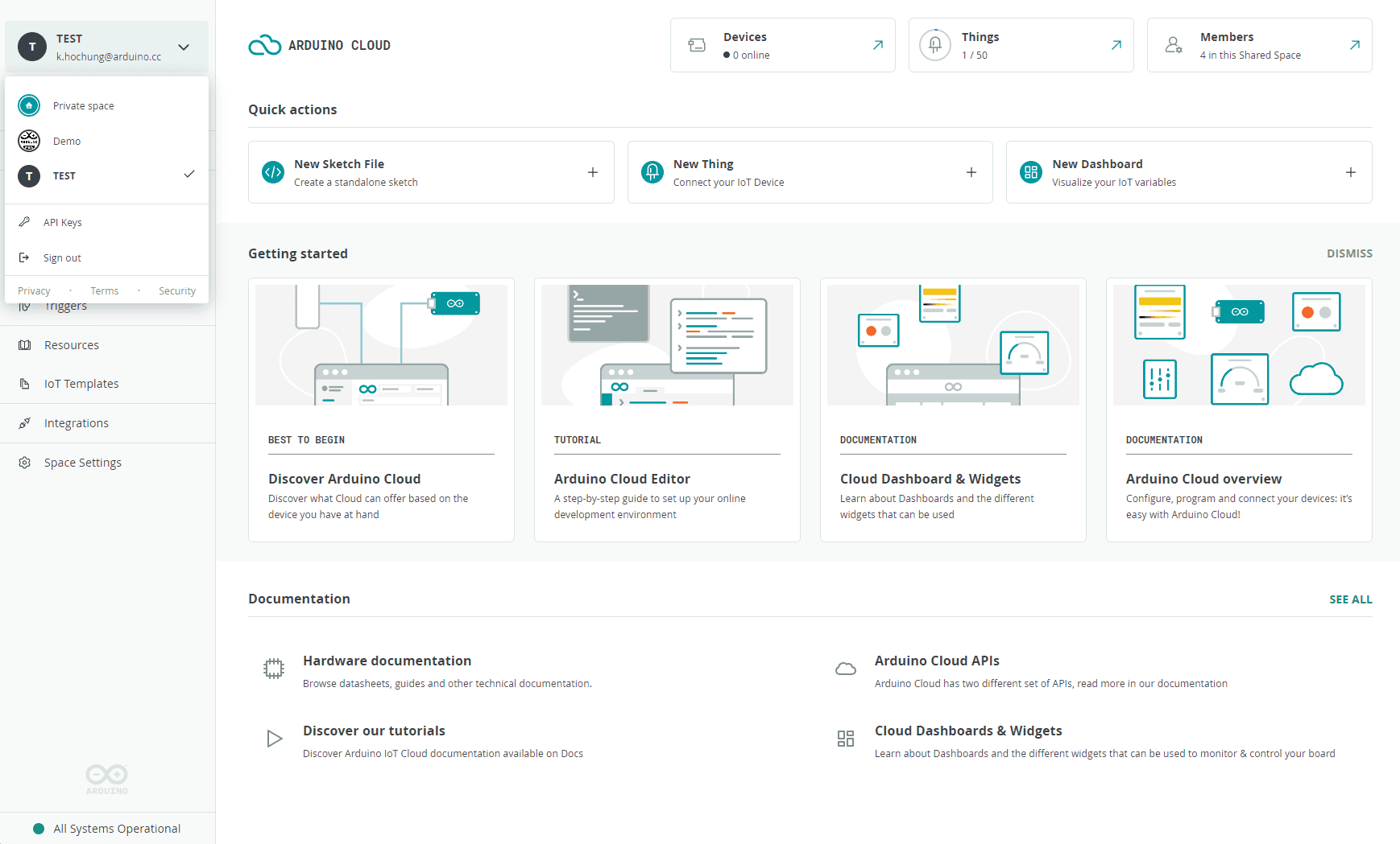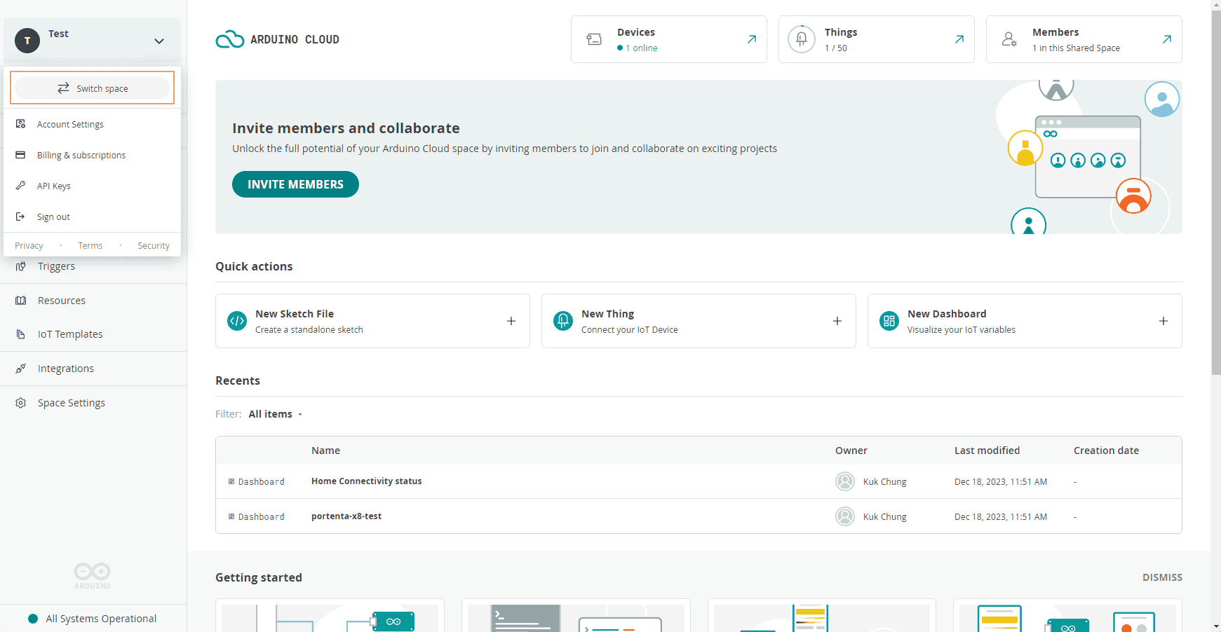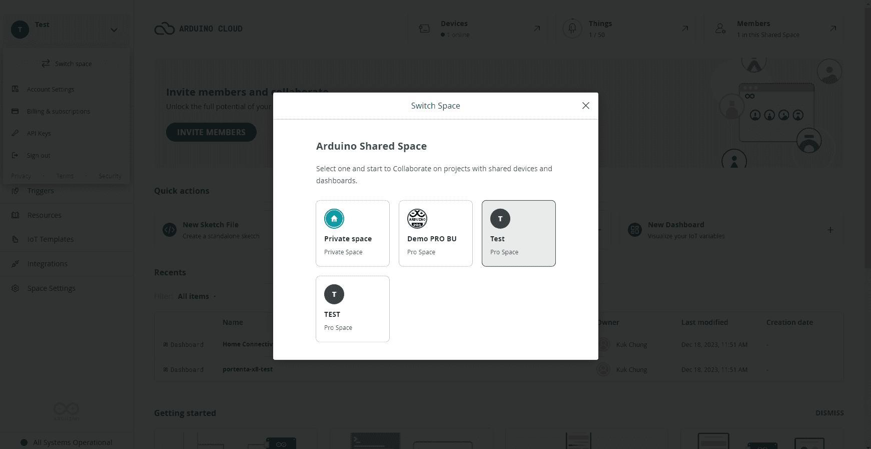The users you added will get the invitation by email with a link to join your Shared Space. You are now ready to start working all together on your Arduino Cloud projects.