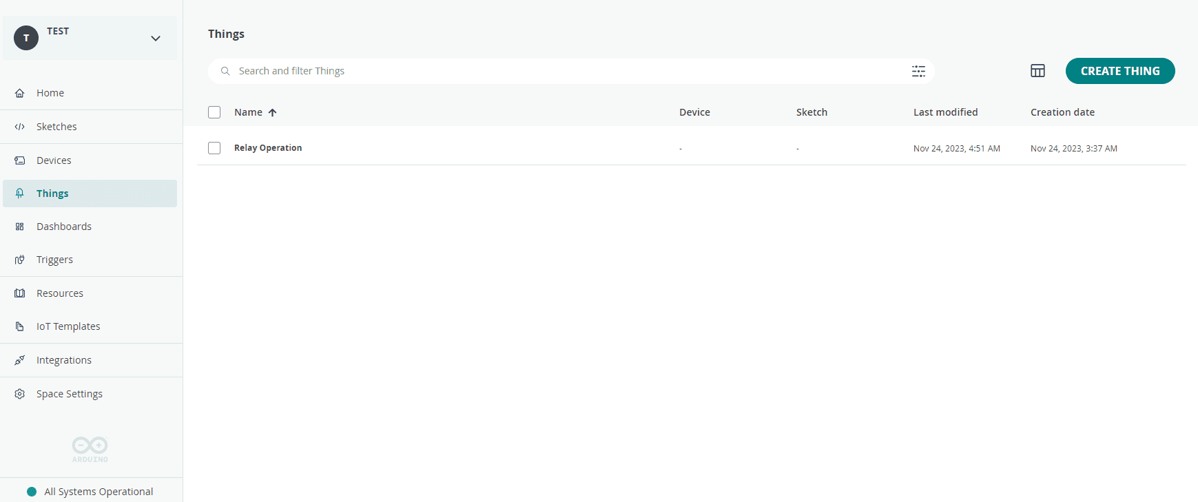 To use your devices in IoT Cloud, you need to associate a Thing with each of them. A Thing is the digital twin of your device, holding the configuration of some variables and other settings, as well as the history of the data collected for those variables.