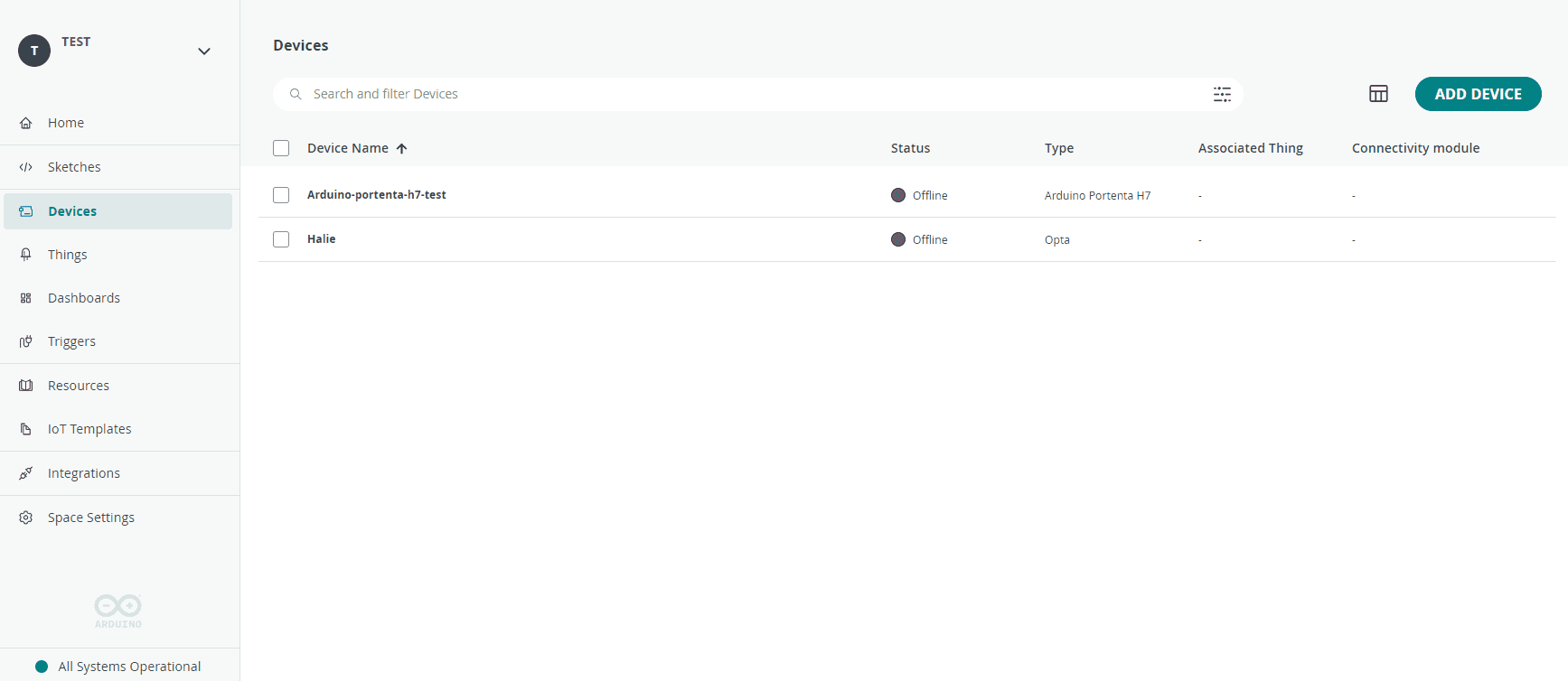 click on ADD DEVICE and decide which type of device you would like to onboard. In this case, a Portenta H7 board will be used.
