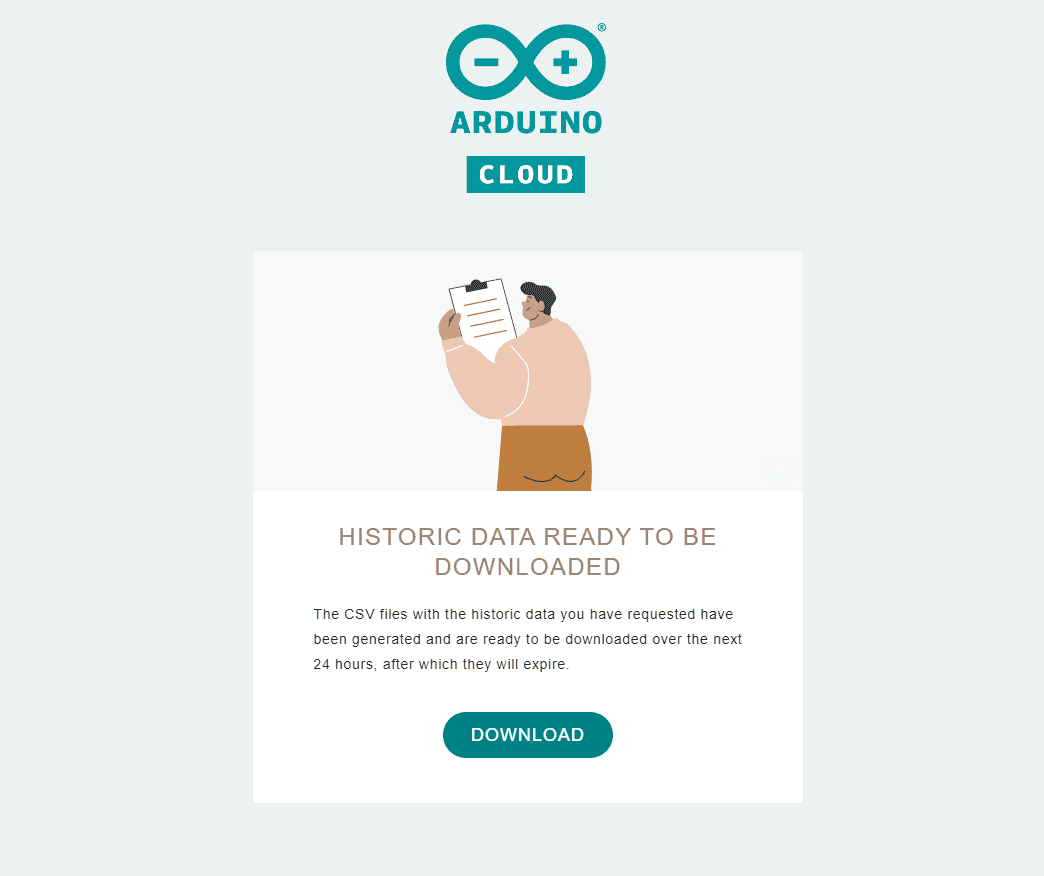 Arduino Cloud for Business allows any user to download historical data from Arduino Cloud Things and Variables. The data are downloaded in .csv format to be ready for further evaluation or manipulation.