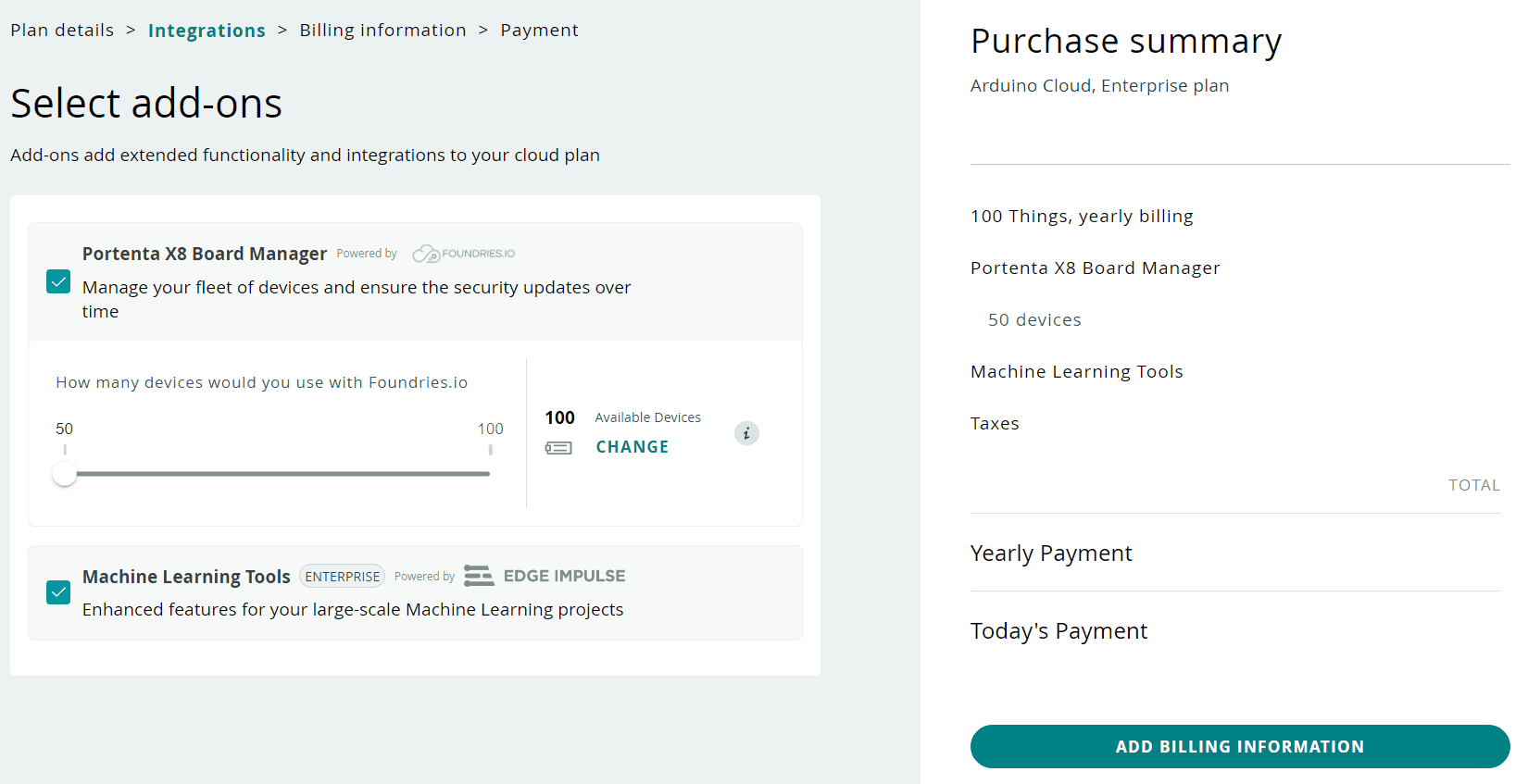 In order to get started with Arduino Cloud for Business, you need to subscribe to a plan.