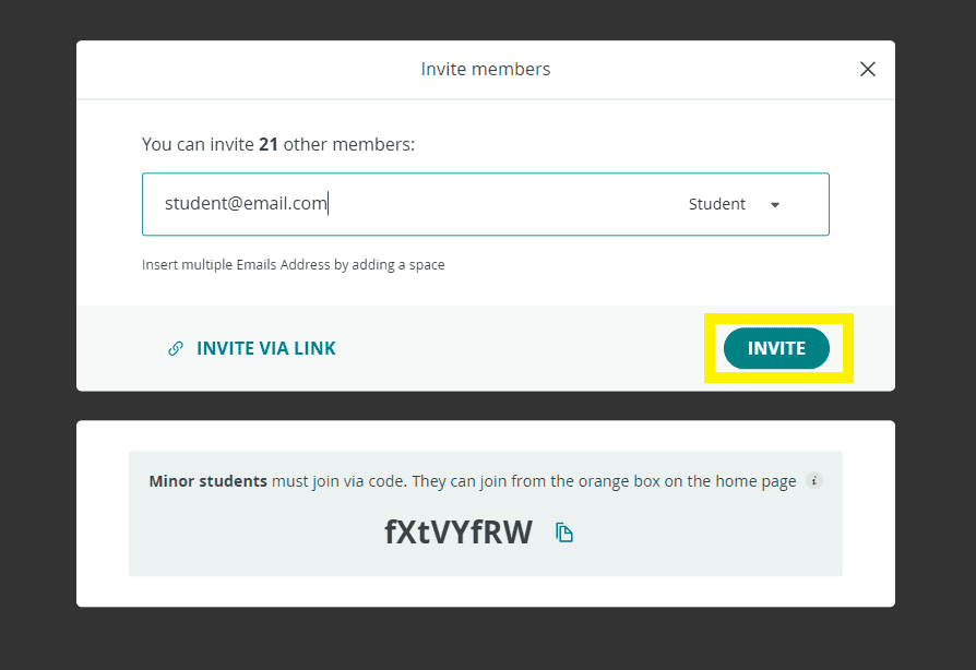 If you don’t have the option of emailing your students you can invite your students to the space by manually sending them an Invite URL.