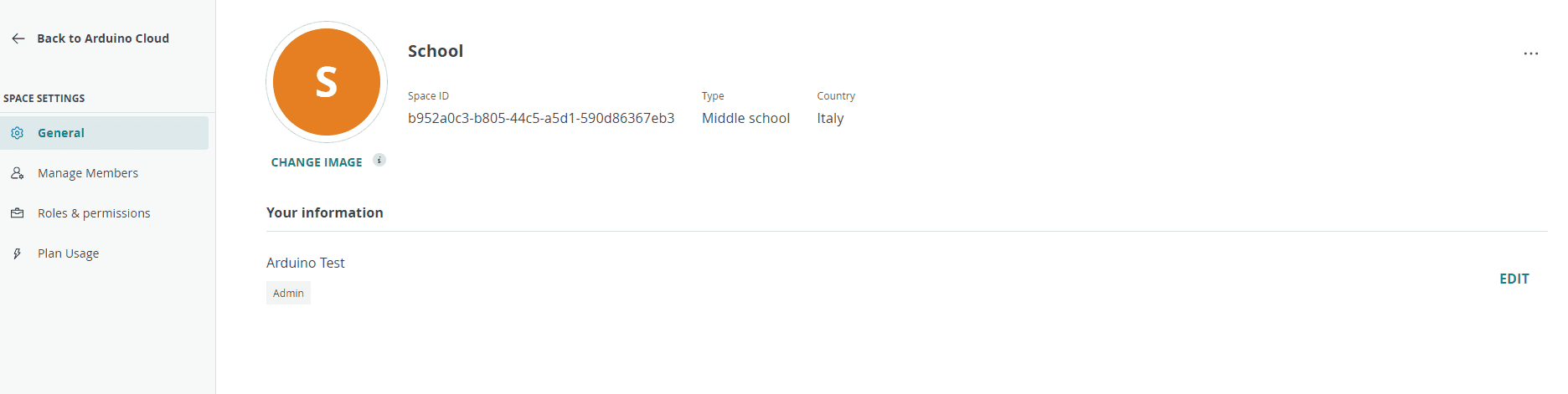 Change Image of your space profile to adding and removing members. If you have a free plan you can also track the usage of the Cloud tools and choose to upgrade to a School plan. To change the current settings of your shared space, navigate to the Space Settings tab using the sidebar.