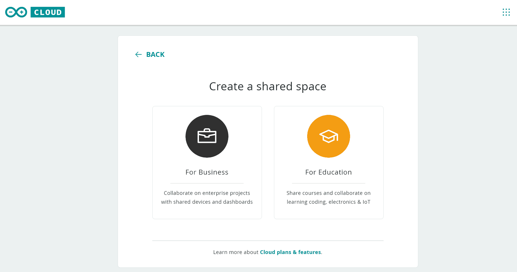 Creating a shared space is simple and straightforward, however it requires you to have an Arduino account before you can get started. If you haven't created any in the past, create one now!