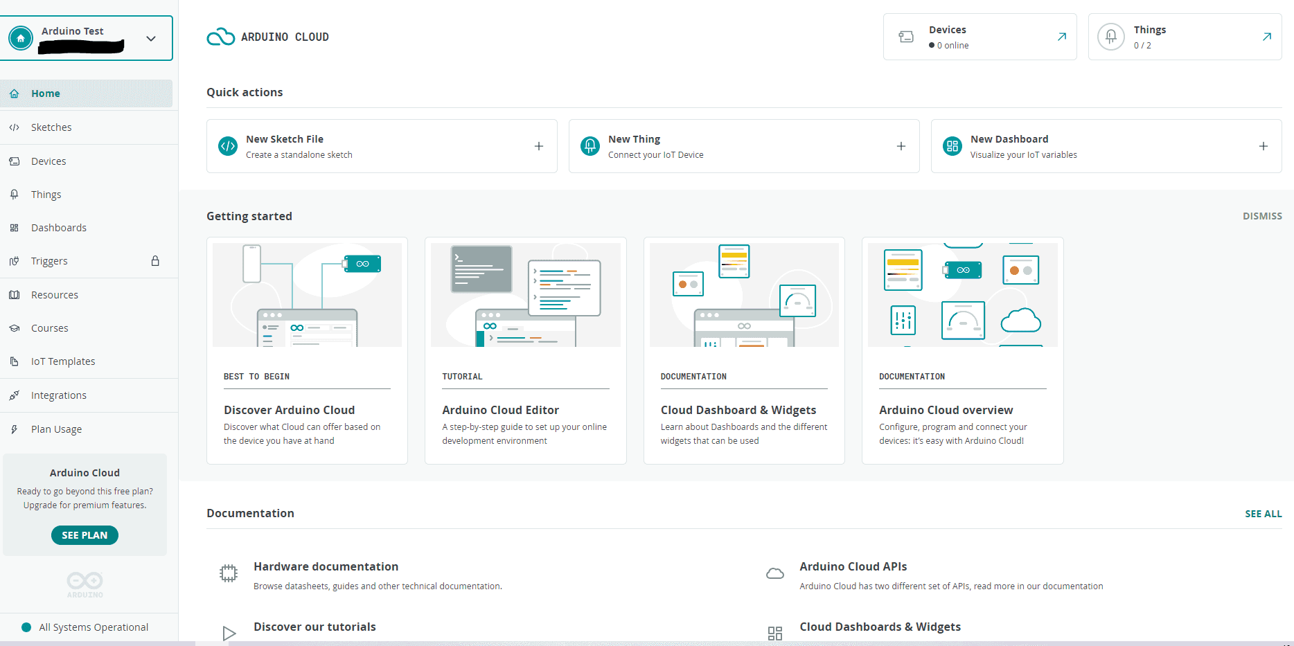 Login to https://app.arduino.cc/ with your Arduino account by default, any new user who has recently created an Arduino account starts their journey with their private space.
