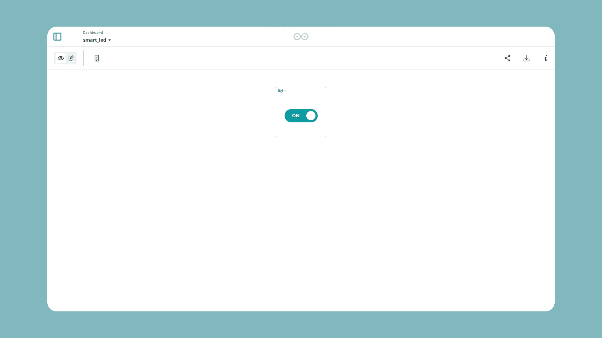 6. Once the sketch has uploaded to your board, let’s check that everything is working as it should. To do so, go back to the Arduino Cloud and once in there, go to the smart_led dashboard we created before. Now, when you turn the light widget in the dashboard ON or OFF, the LED in your board should also turn ON or OFF.