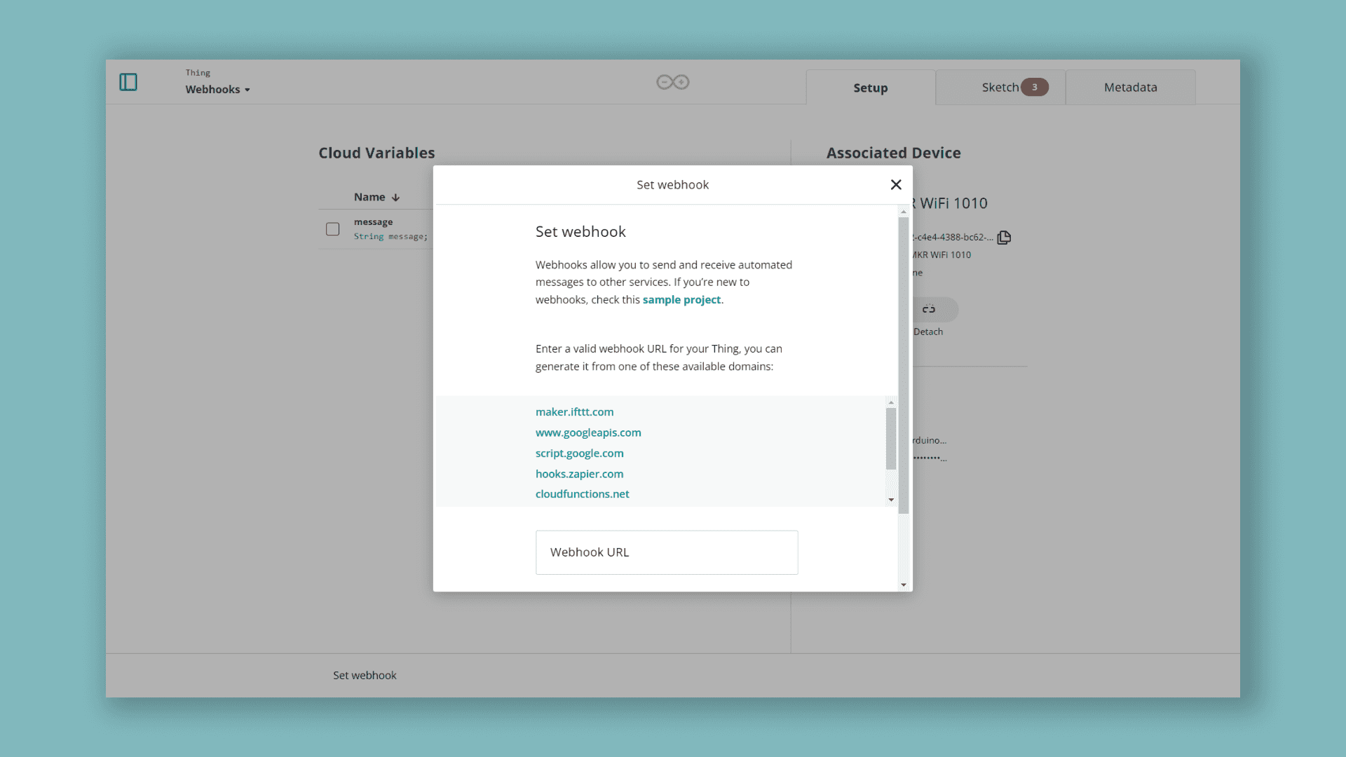 Learn how to setup webhooks with the Arduino Cloud to work with third party platforms such as IFTTT.