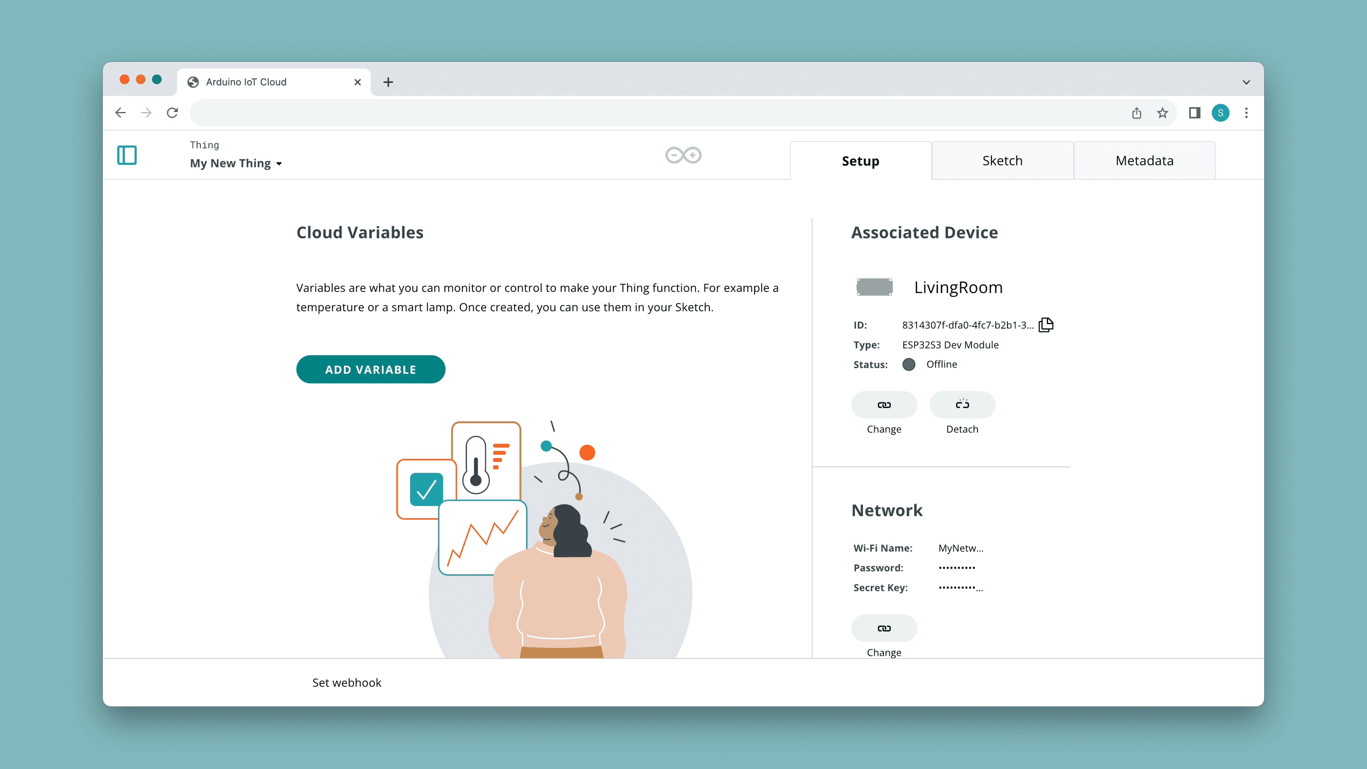 Setting up a project in the Arduino Cloud is easy, and can be done through a few simple steps summarized in this section.