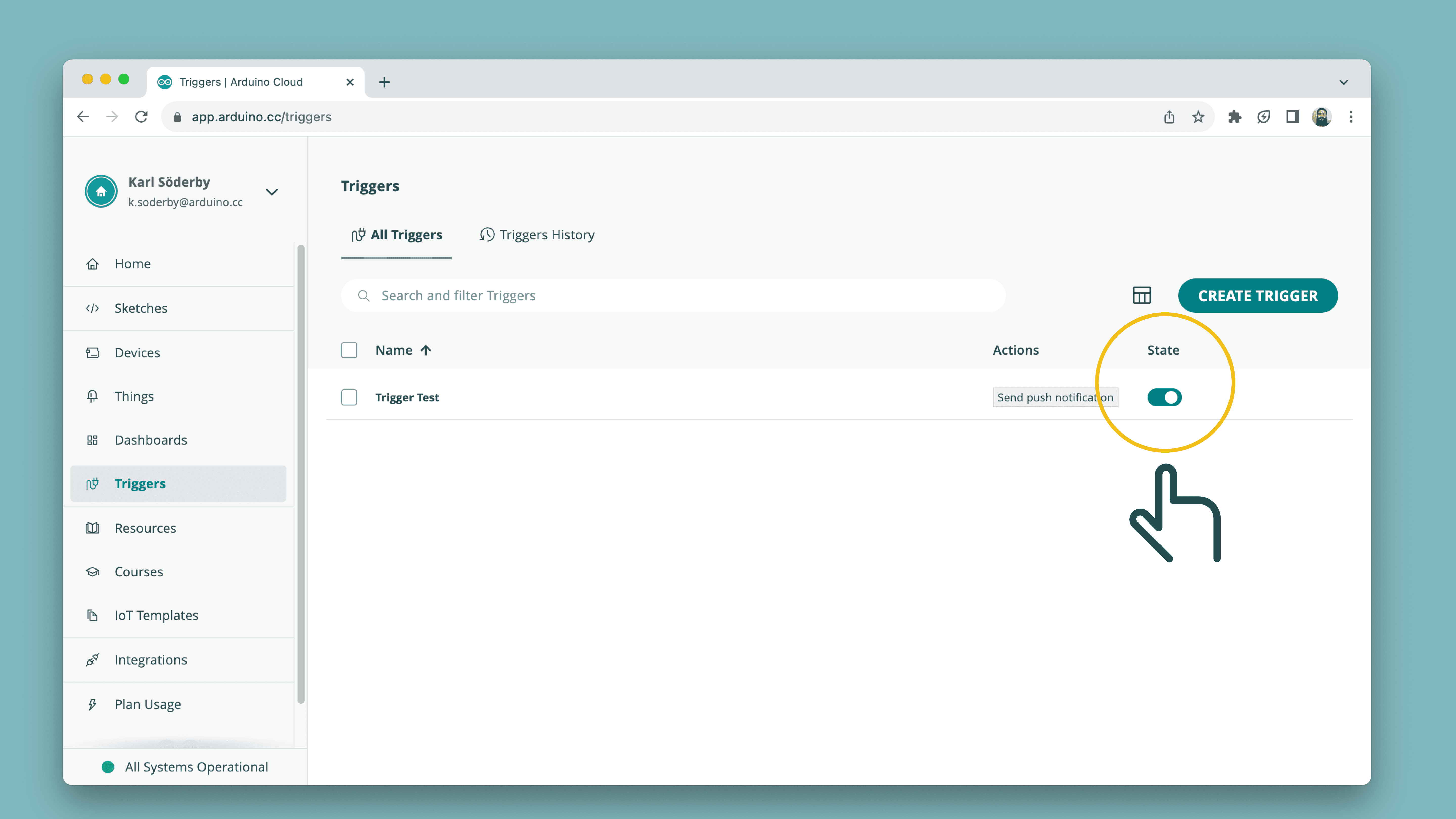trigger variable we created earlier.Go to the Triggers Page, accessible in the left hand menu.
