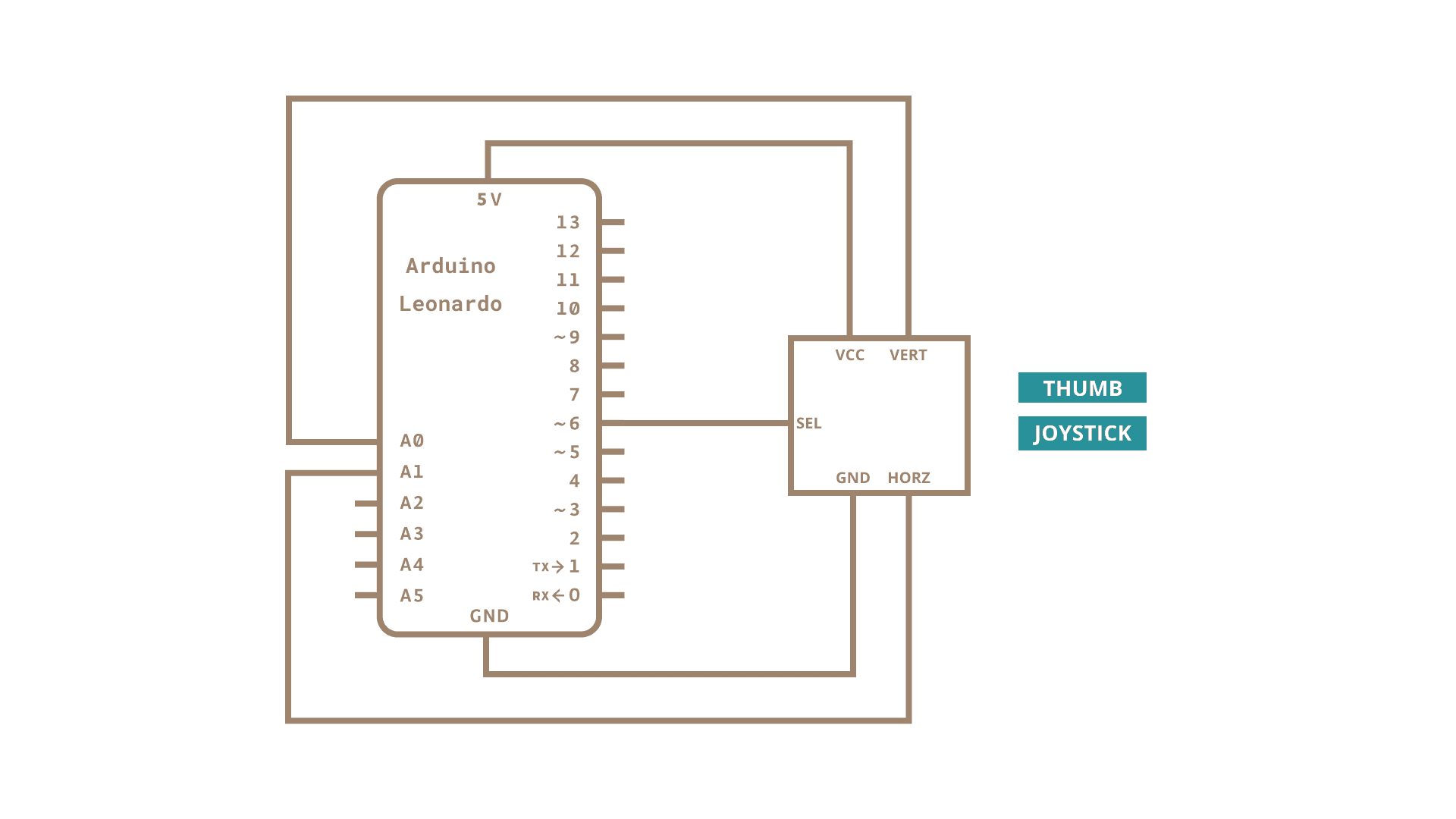 Connect your Leonardo board to your computer with a micro-USB cable. The pushbutton is connected to pin 6. If you're using a part like the Joystick shield pictured below, you may not need a pulldown resistor. The x-axis on the joystick is connected to analog in 0, the y-axis is on analog in 1.