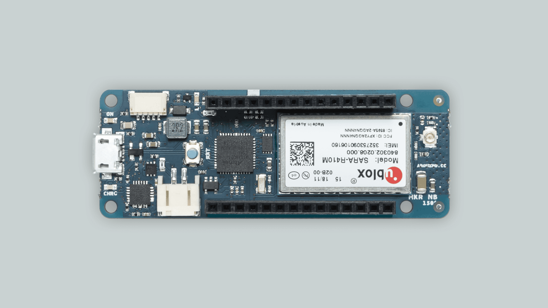 The MKR NB 1500 is a development board designed for global use, providing connectivity on LTE's Cat M1/NB1 bands 1, 2, 3, 4, 5, 8, 12, 13, 18, 19, 20, 25, 26, 28.