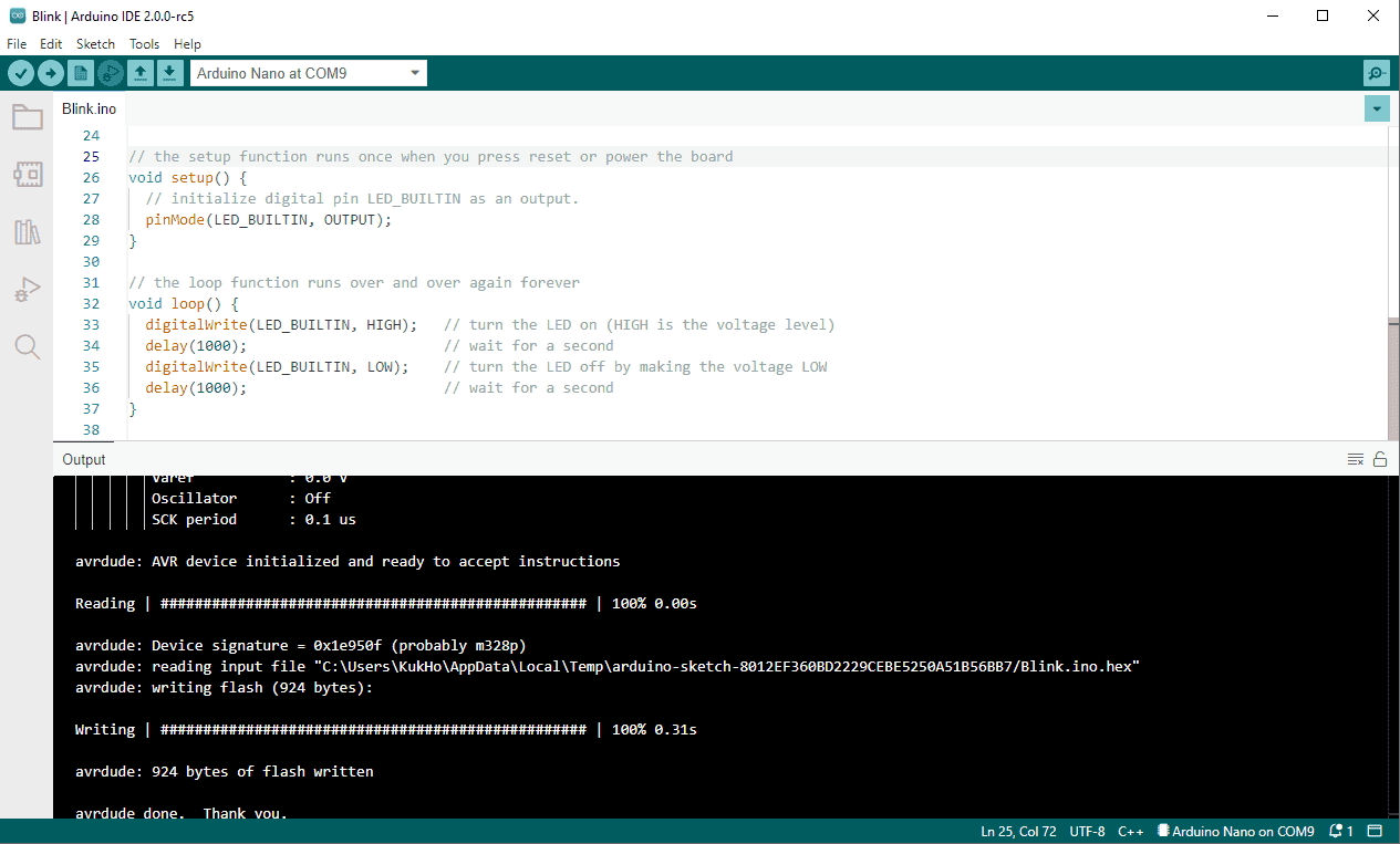 Blink.ino sketch: when we compile this sketch, we create a binary file that is later stored in the flash memory of an Arduino board. The sketch is then executed when the board is powered on.RAM