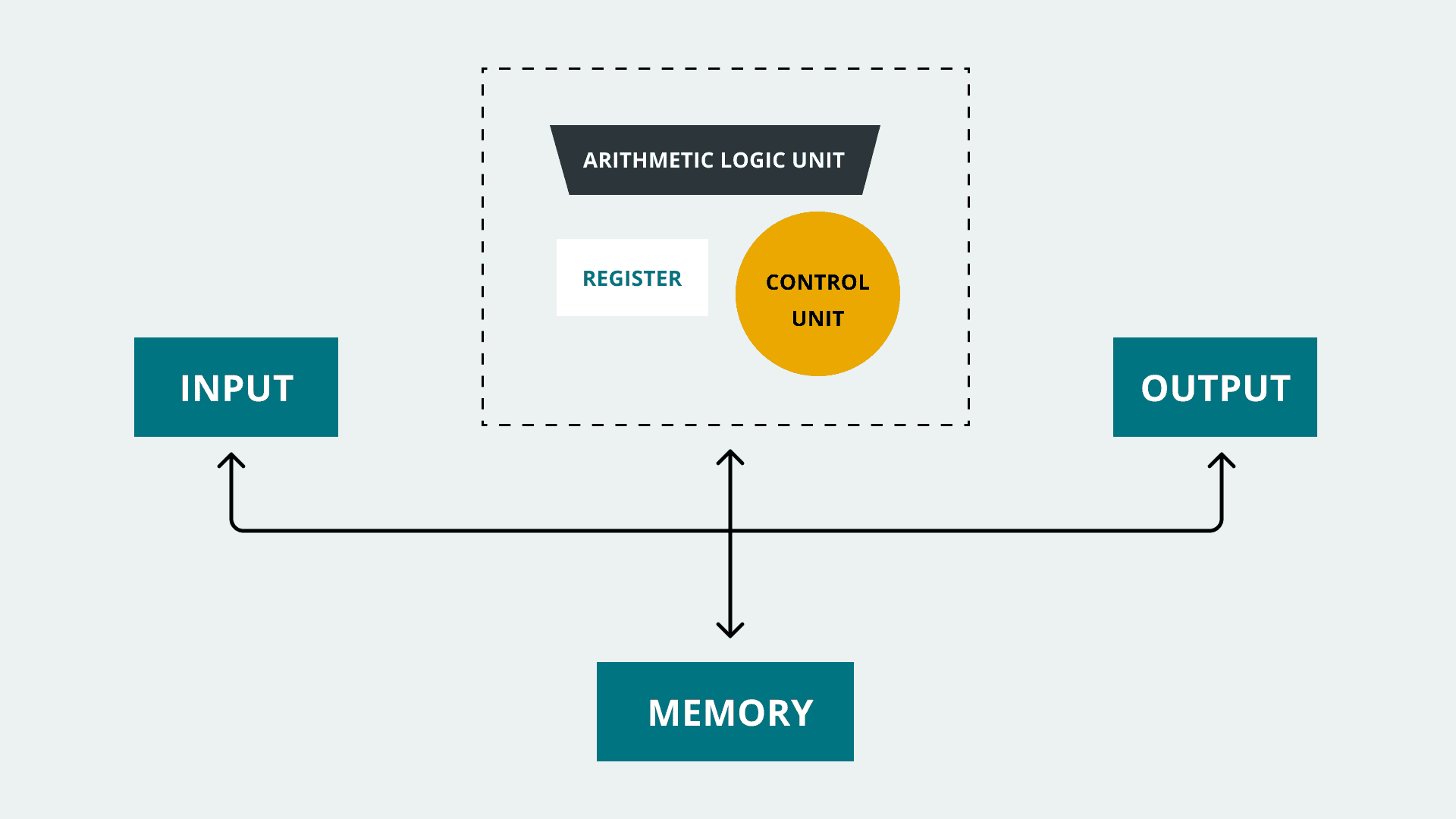 Both are accessed by the CPU using the same communications bus, as shown below. Von Neumann's architecture is fundamental since nearly all digital computers design have been based on this architecture.