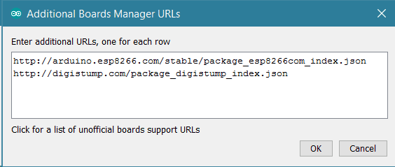 We have provided a solution for the easy installation of a core developed by a third party. This requires a specific file, written in JSON format, that must be put in the dedicated field Additional Board Manager URLs inside Arduino Software (IDE) Preferences.