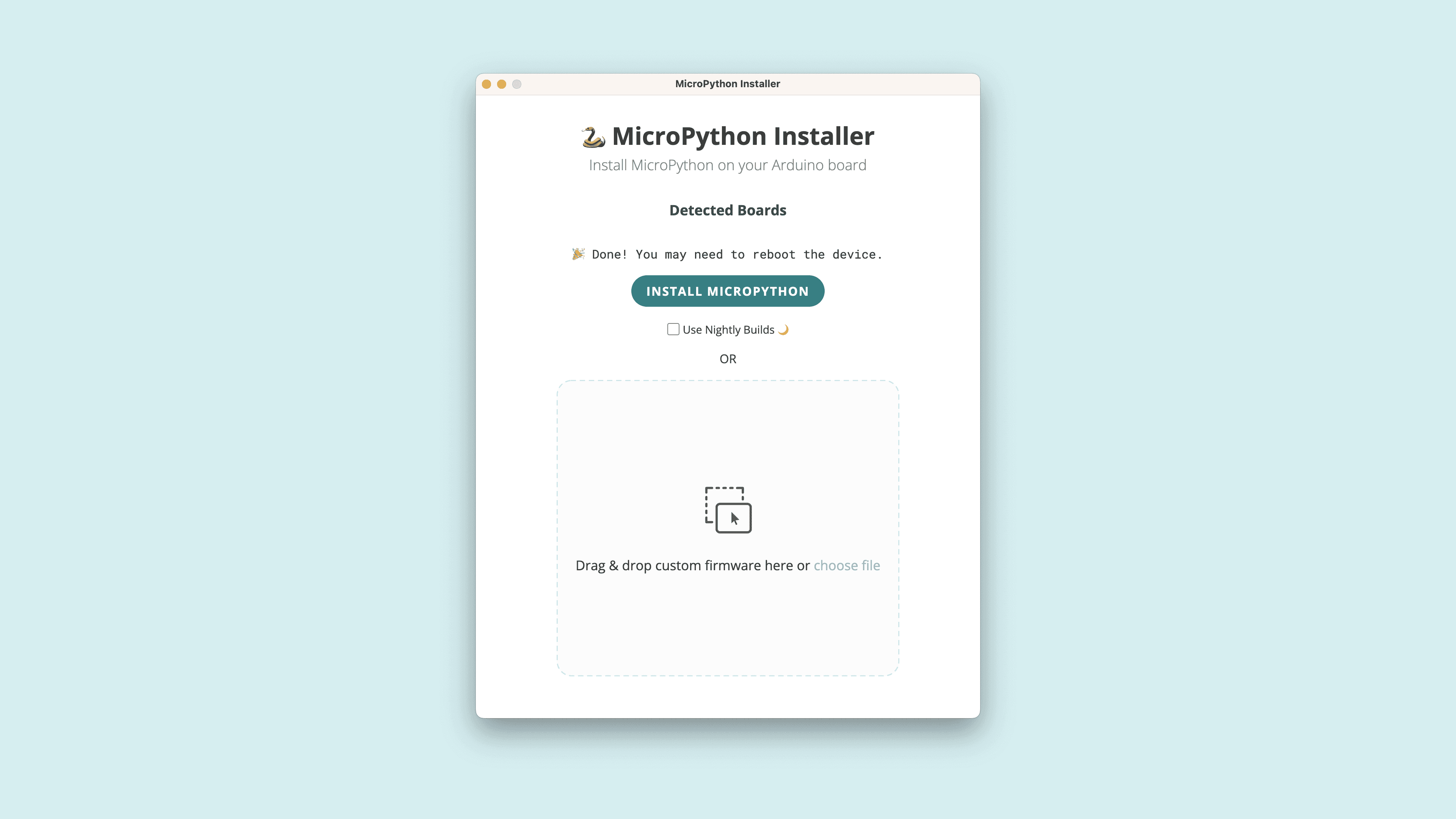 Once complete, you're all set and you're ready to start programming the board in MicroPython.