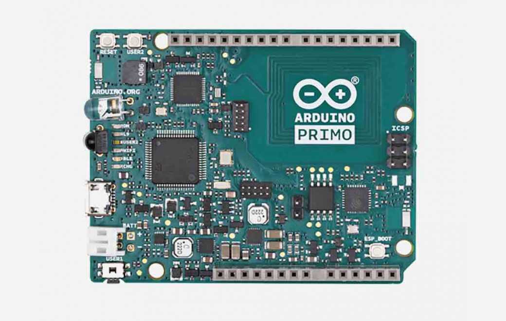 The Arduino Primo is the first board developed in cooperation with Nordic Semiconductor. It brings new benefits for the IoT world all on one platform: advanced 32-bit microcontroller architecture, Bluetooth® low energy, Wi-Fi, near-field communications (NFC), and infrared (IR) transmit and receive capability.