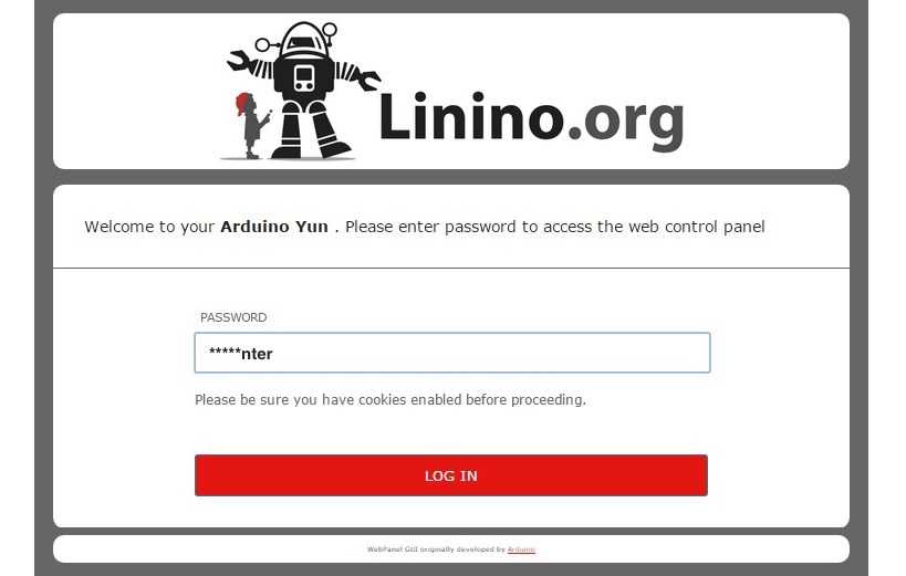 Open a web browser and write the following address http://linino.local or the ip address http://192.168.240.1 in the address bar.