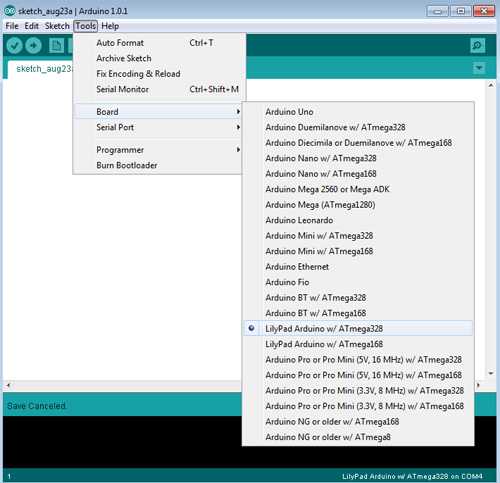 Use your LilyPad Arduino, LilyPad Arduino Simple and LilyPad Arduino Simple Snap on the Arduino Desktop IDE