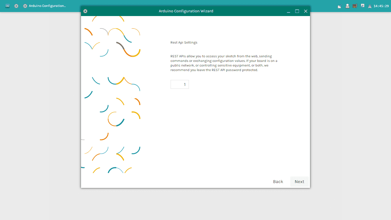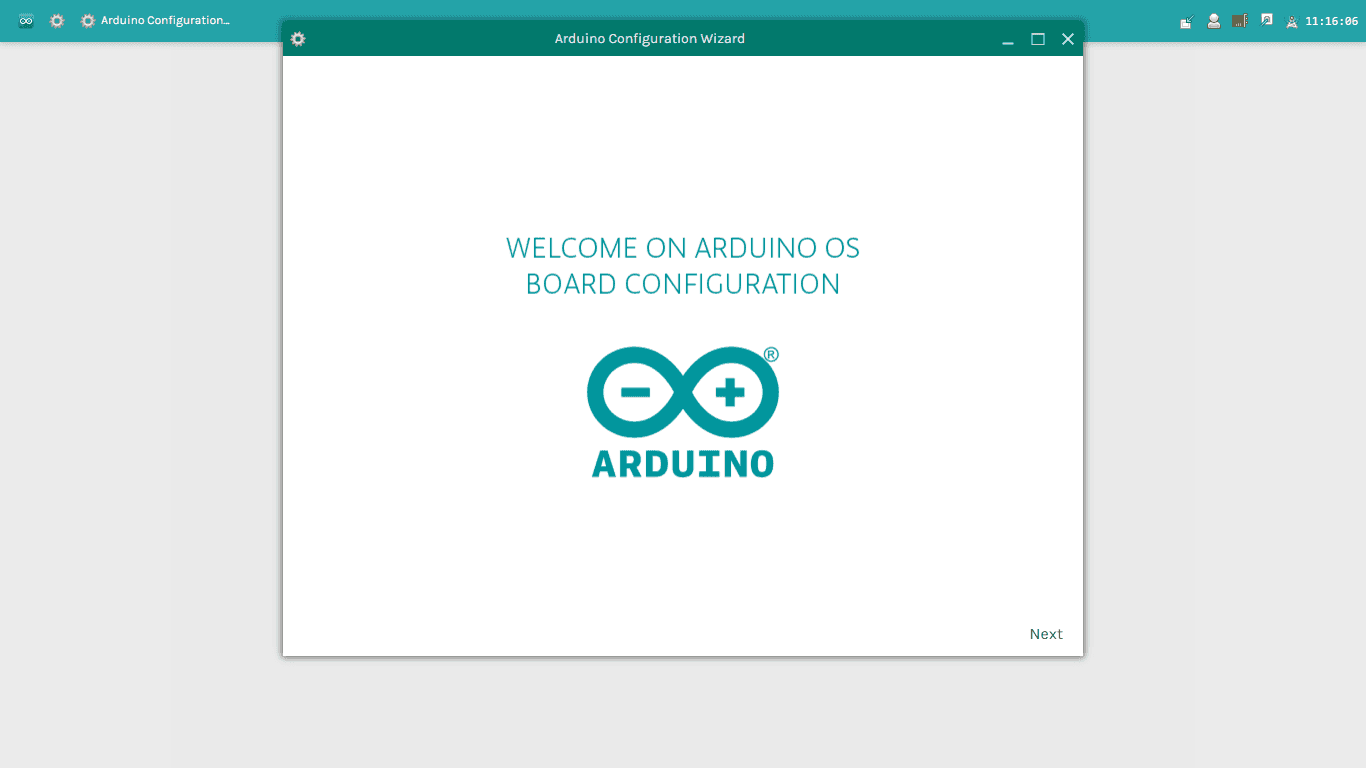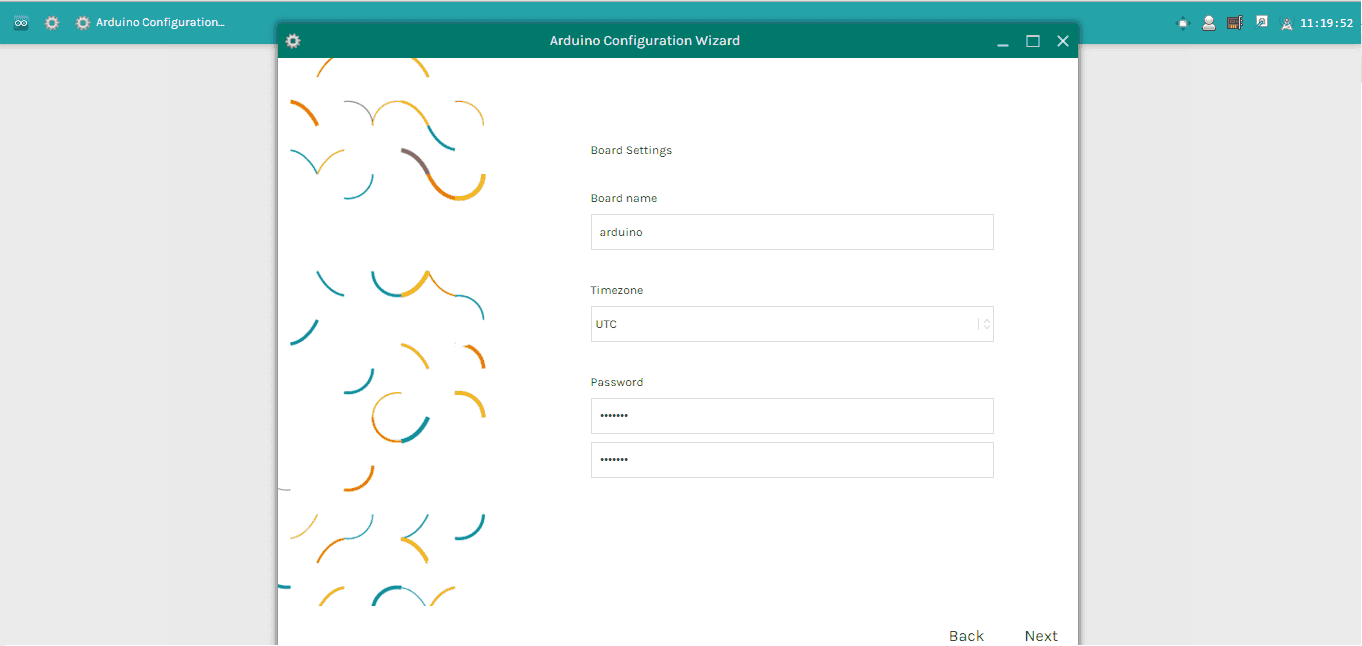 Enter default password: arduino and click Login button. Now, you are in Arduino OS, and it will start the Arduino Configuration wizard that it will help you, step by step, to configure your board.