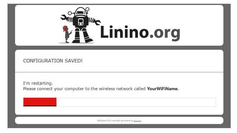When you press the Configure & Restart button, the Arduino will reset itself and join the specified network. The Arduino network will shut down after a few moments.