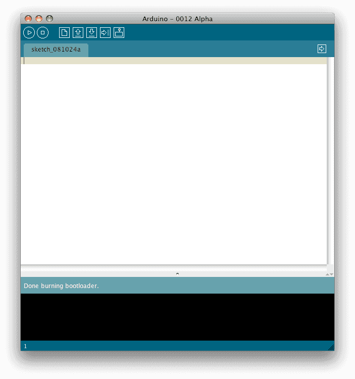 When done bootloading, the status bar will be updated with the message "Done burning bootloader." Your chip is now ready to be programmer using the Arduino software! Congrats! Power cycle your Arduino and your new Atmega chip will be running a simple LED blink program with pin 13 (if this is not the case, try programming it with one). If this is working, it was most definitely a success.