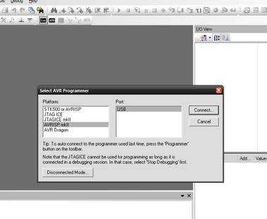 Press the Con button. It is the tiny little button labeled "CON" that looks like a little chip. Then, select the type of ISP that you are using: in this example, AVR ISP Mk II.