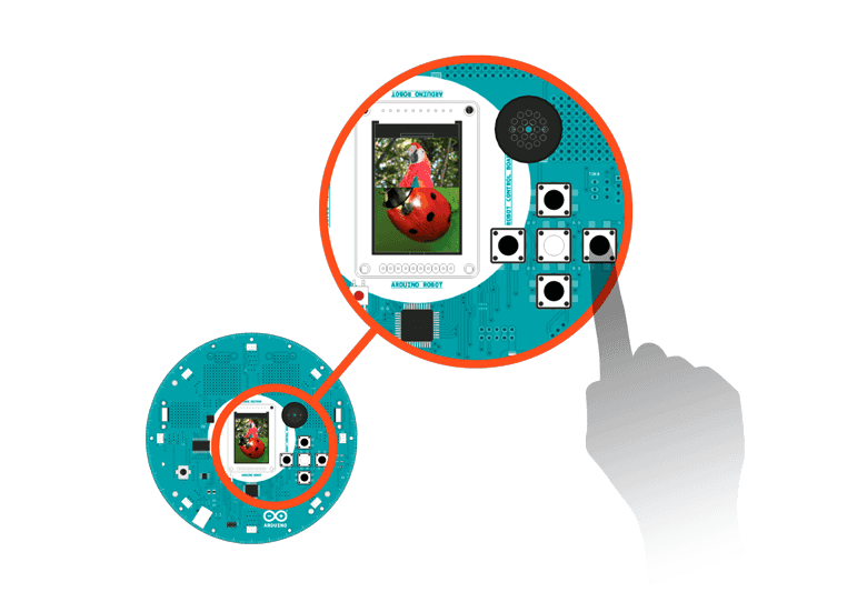You can make your own gallery/picture show with help of the Robot. Put some pictures in the SD card, start the sketch, and you can see them showing up on the LCD. Use left and right button on the D-pad to go the previous or next image. Press up or down to enter the "tilt navigation" mode.