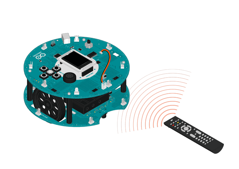 If you connect a IR remote receiver to the robot, you can control it like controlling your TV set. Take a Sony compatible remote controller, map some buttons to different actions, and you can make the robot move around without touching it!