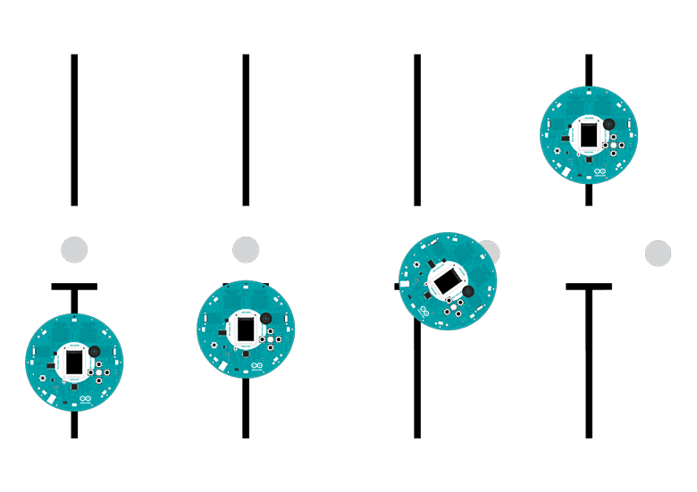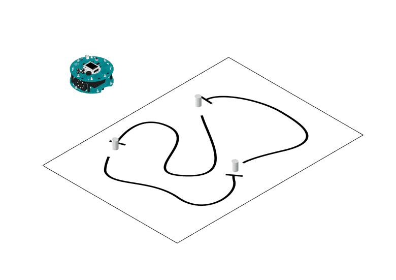 First, draw your racing track, adding the stops (perpendicular lines) for the robot to know where the obstacles will be.