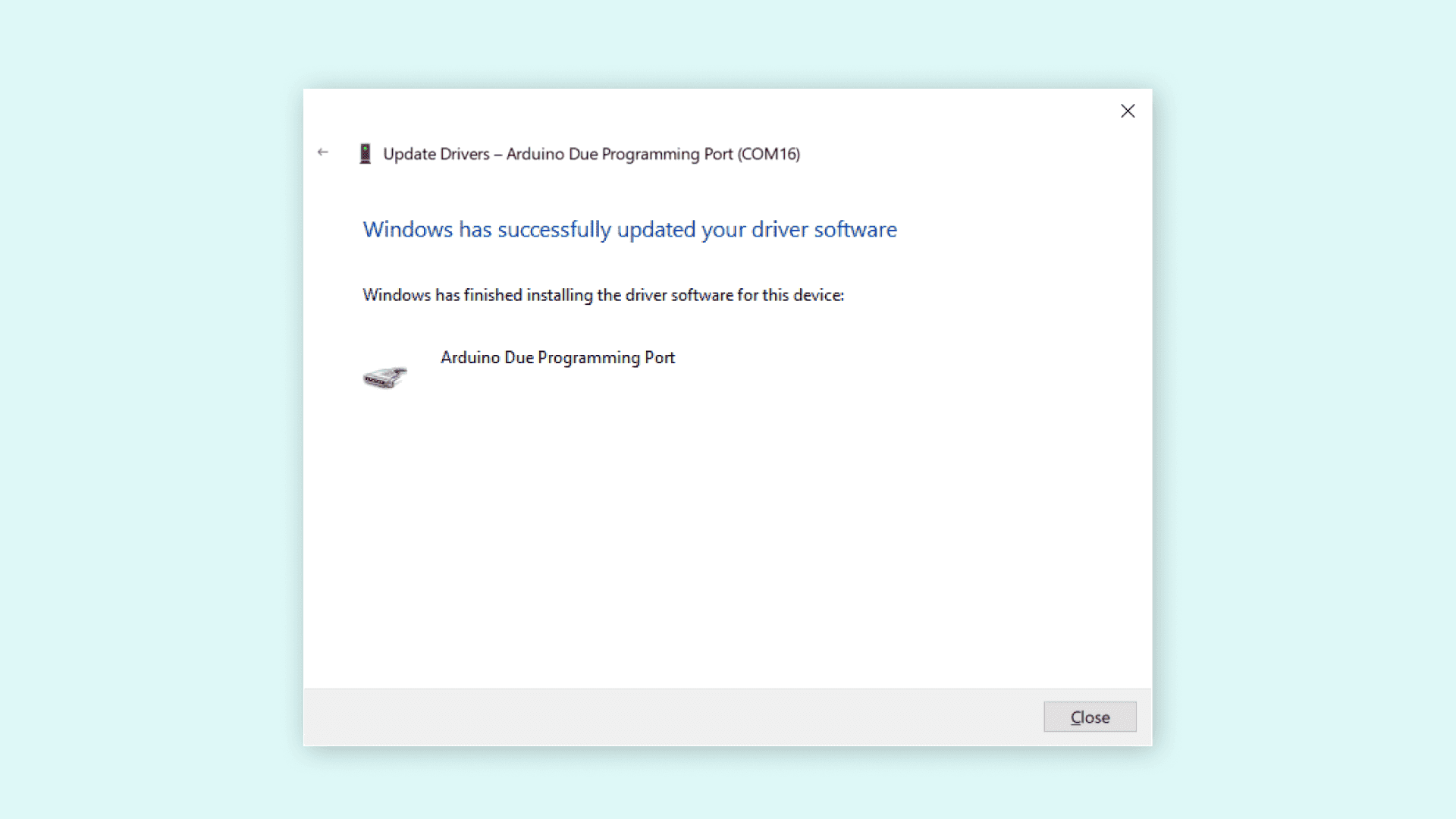 - This will install the drivers necessary for your Due board, and you will get a confirmation when it is complete!