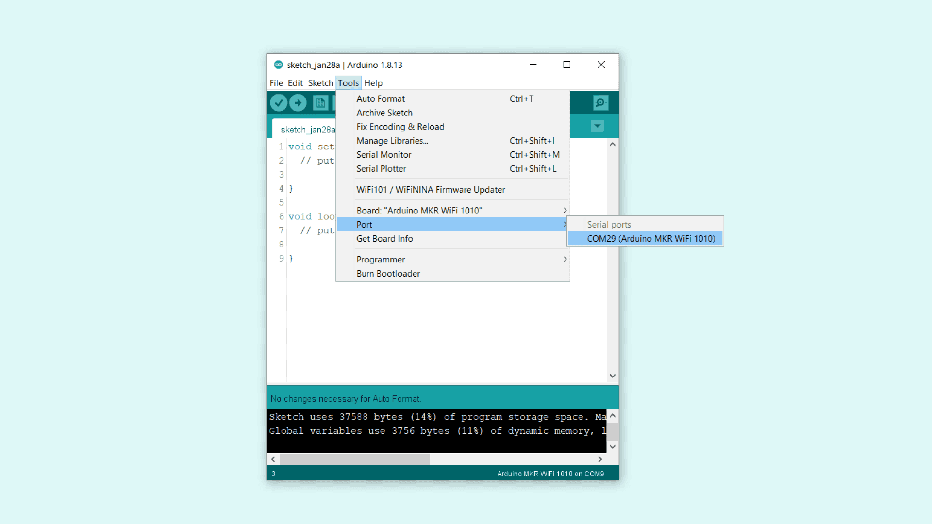 /dev/cu.usbmodem14112 (Arduino MKR WiFi 1010)