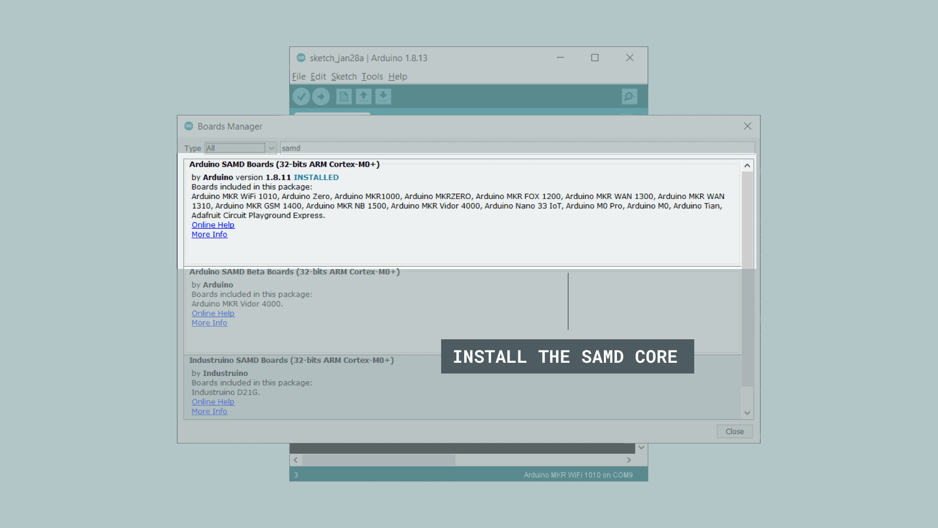 A step-by-step guide to install the core needed for the MKR Family, Zero and Nano 33 IoT boards.