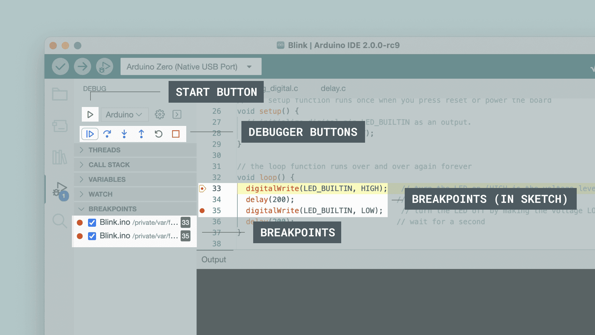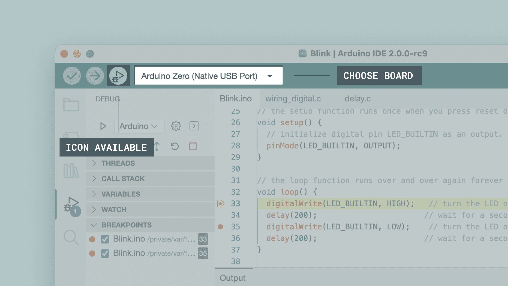 Learn how to set up a Zero board, J-Link and Atmel-ICE debuggers with the Arduino IDE 2, and how to debug a program.