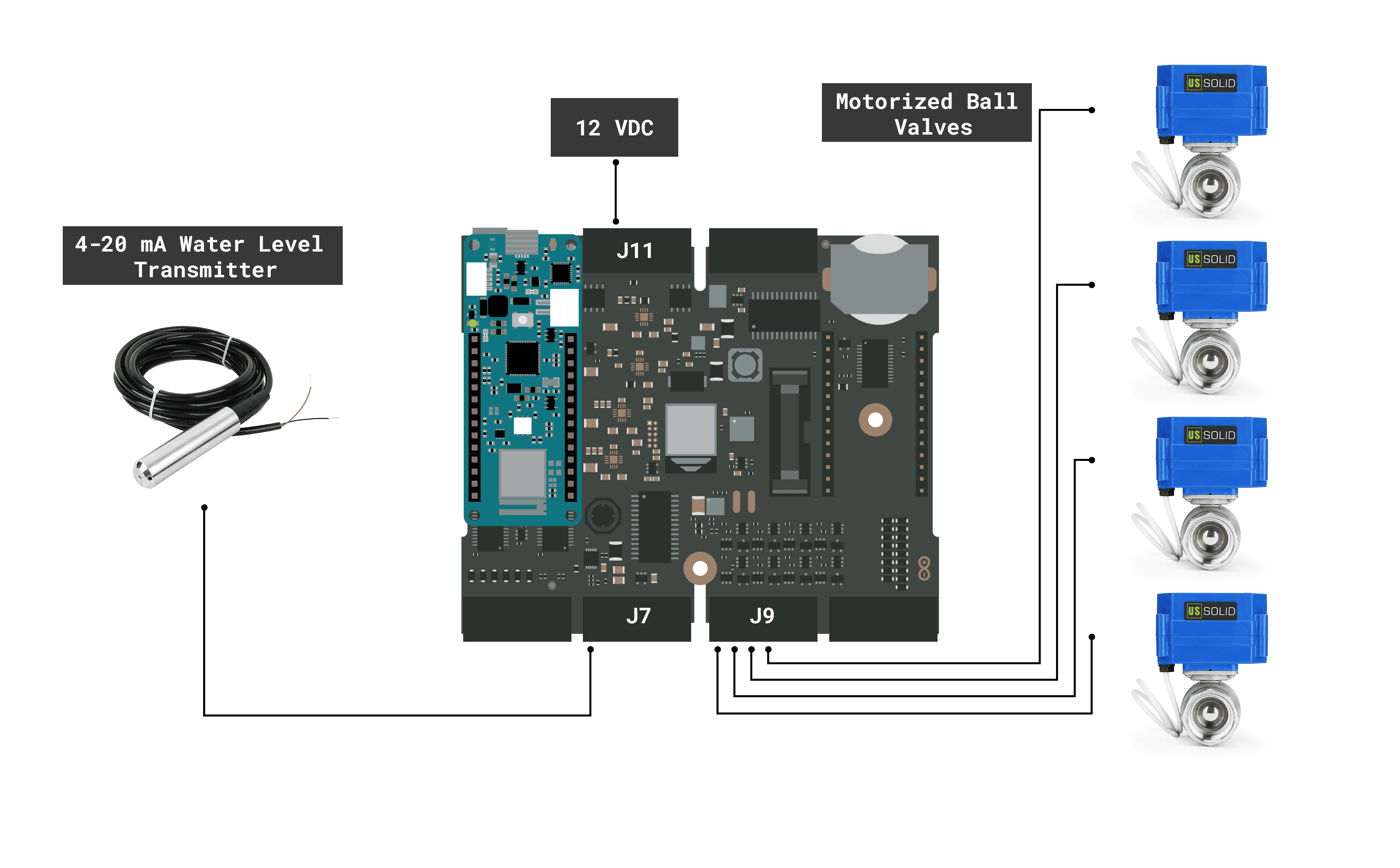 - The water level transmitter will be connected to the +19 V reference and the 4-20 mA input number one of the J7 connector.