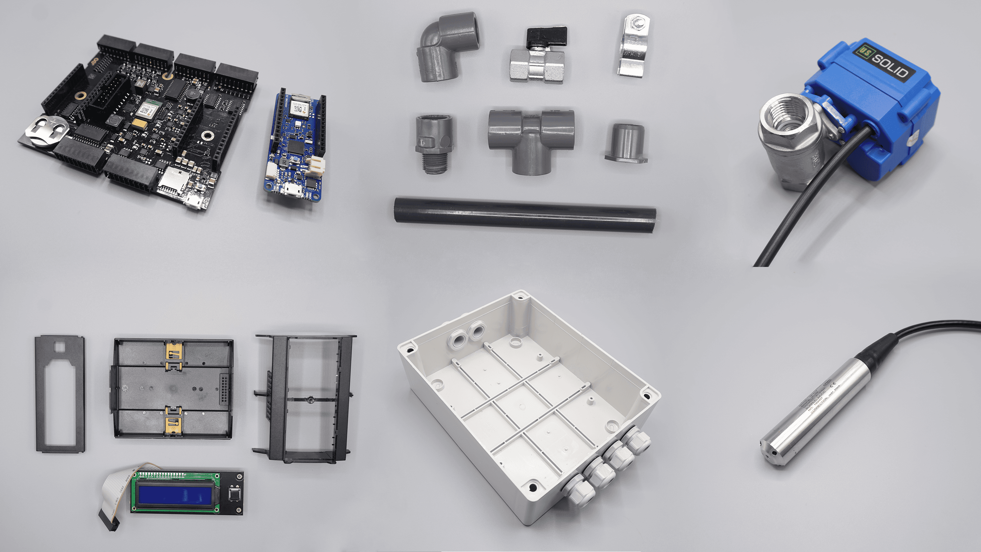 - Control an LCD screen where the status of the valves and timers are shown. In addition, the LCD push button can be used to manually activate the valves.
