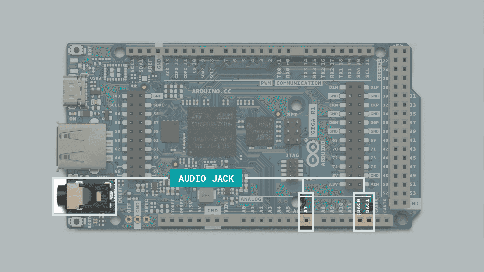 11 // Write the buffer data to DAC12 dac1.write(buf);13 }*The options for audio playback and generation on your GIGA R1 are much more vast than this, however. To learn about audio playback in depth, check out the GIGA R1 Audio Guide.*