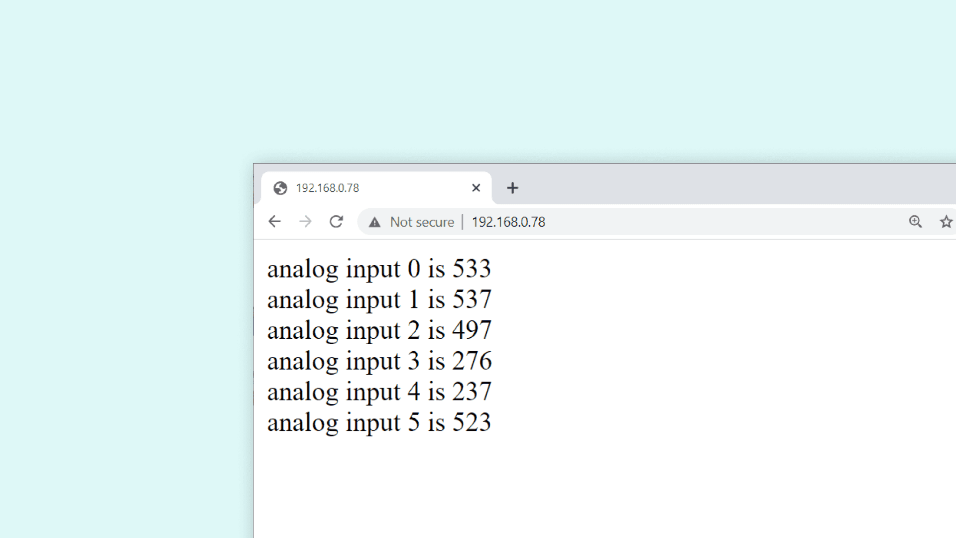 We will test it out, by first reading the value of 5 analog sensors on the board, and print them to a web server. Any client connecting on the same network will then be able to view the values in a browser.