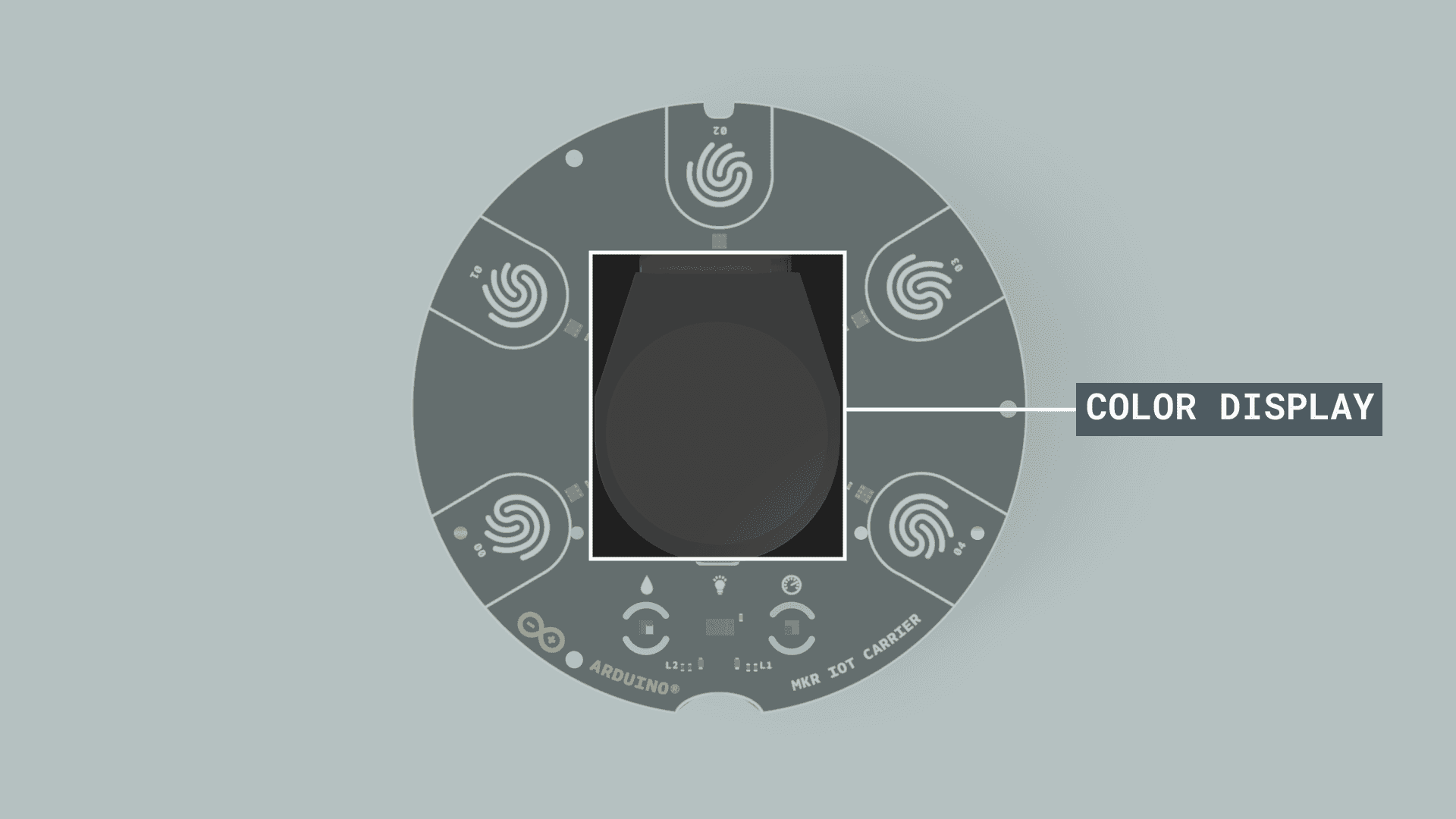The screen on the MKR IoT Carrier is a rounded 1.3” TFT display, with a 240 x 240 resolution and a diameter of 36 x 40 mm.