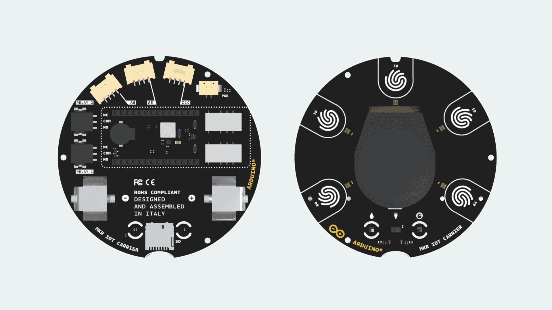 The MKR IoT Carrier can be controlled through the Arduino Cloud, a Cloud service that allows us to create IoT applications in just minutes, if combined with an Arduino Cloud compatible board. Here's a list of the Arduino MKR family boards that are compatible with the Arduino Cloud: