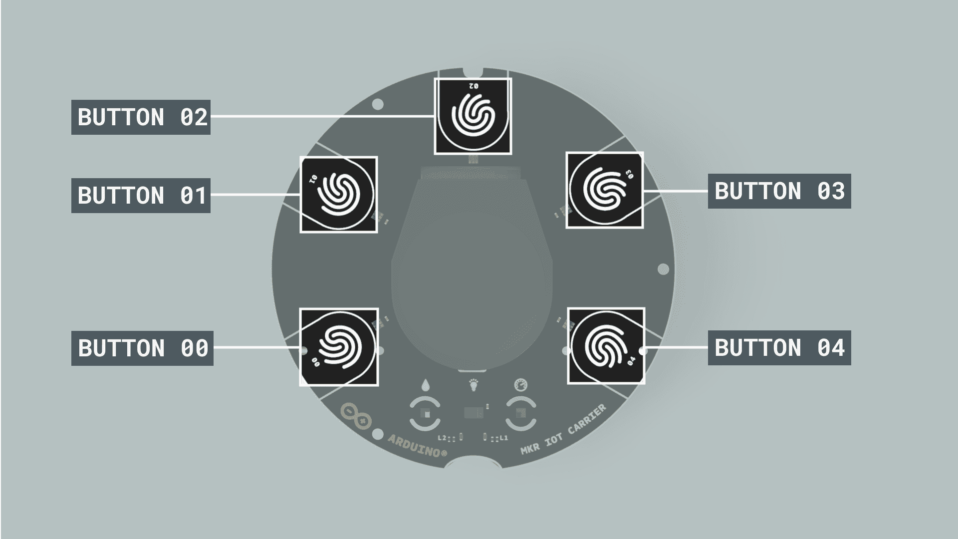 TOUCH0 with TOUCH1, TOUCH2, TOUCH3, TOUCH4 in the examples above to access the other buttons. The code example below shows how the status of a button can be checked.1void loop(){2 // updates buttons status3 carrier.Buttons.update();4