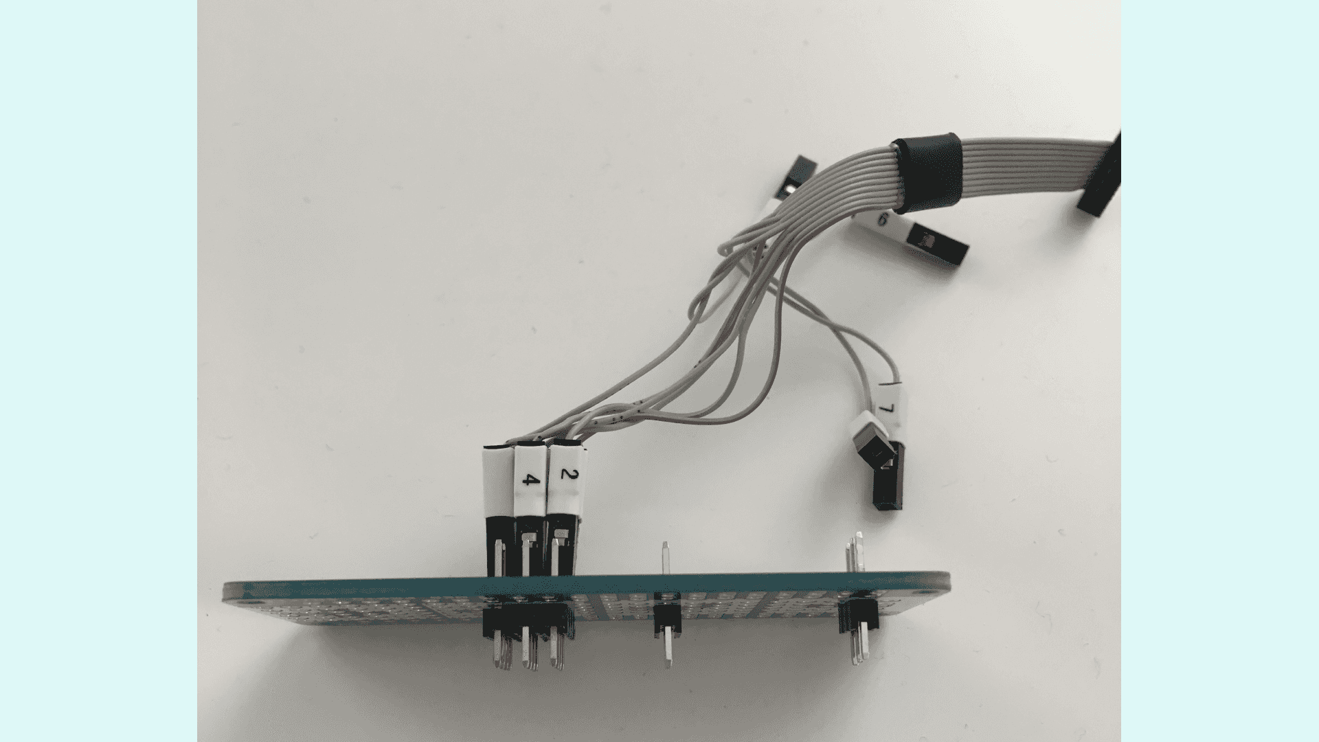 Now you can connect the mini-squid cable to the soldered right-angle headers. Notice that, while the headers are soldered to the exposed pads of the MKR WiFi 1010 board, you are not going to be able to use the board in a breadboard because it won't fit.