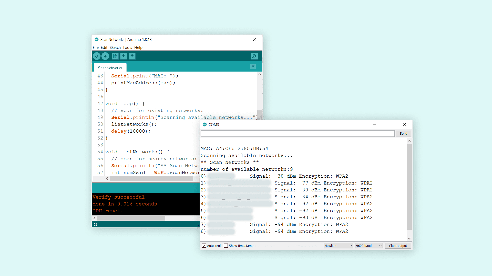 Learn how to setup your board to scan nearby Wi-Fi networks, and print them out in the Serial Monitor.