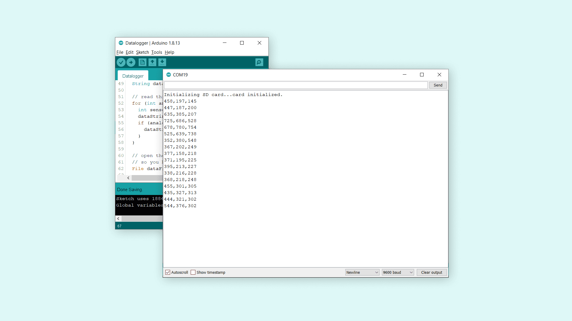 Now if we are seeing these values, and no error messages, we can assume the data logging on the SD card has gone well. To check this, let's follow a few simple steps: