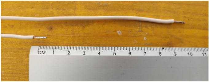 We need two solid wires, of different length. For example, if we want to be sure to check the presence of at least 10 cm of water, the difference length will be exactly that.