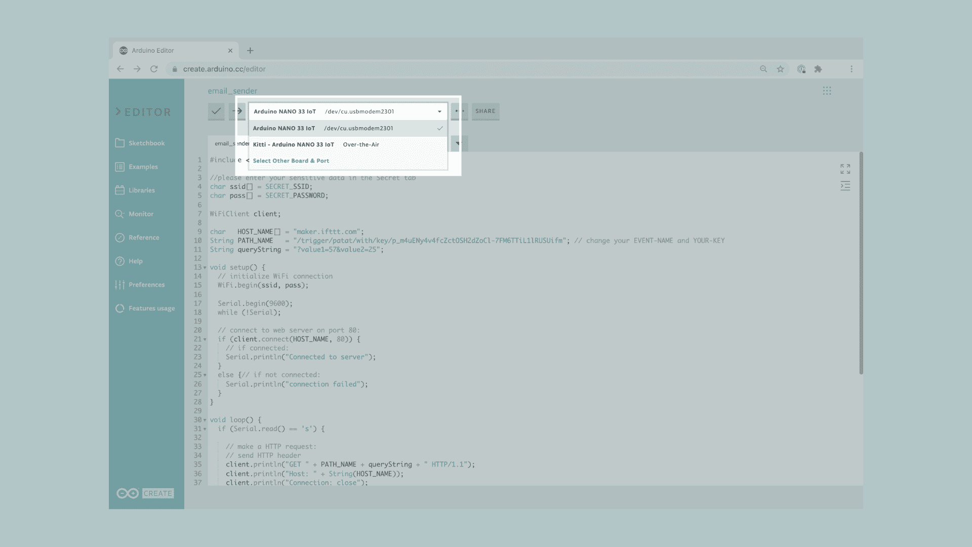 - Learn how to send an email from the Arduino Web Editor using online automation tools.