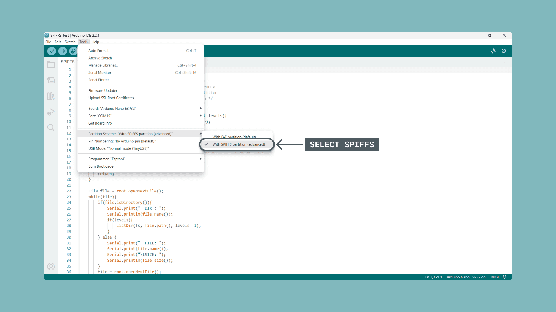 Get started with the SPIFFS partition scheme on the Nano ESP32.