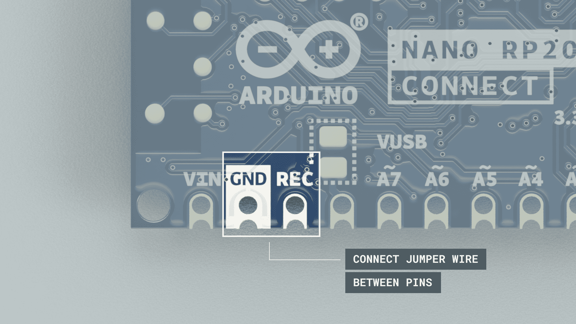 2. Place a jumper wire between the REC and GND pins on the board, then press the reset button.
