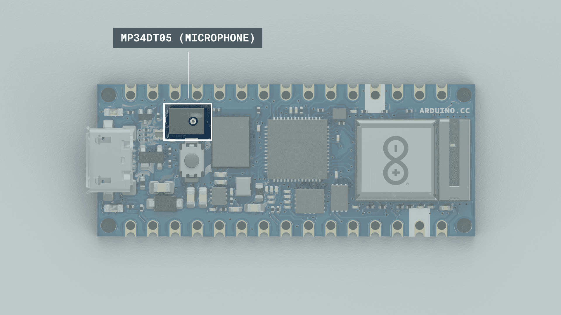 To access the data from the MP34DT06JTR, we need to use the PDM library that is included in the Arduino Mbed OS Nano Board Package. If the Board Package is installed, you will find an example that works by browsing File > Examples > PDM > PDMSerialPlotter.