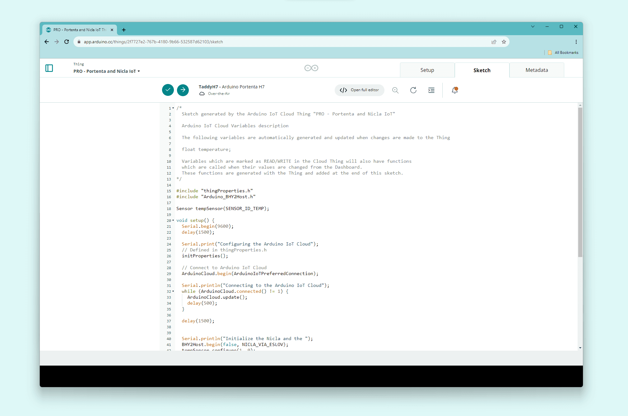 This tutorial shows you how to set up the Arduino Nicla Sense ME and the Arduino Portenta H7 to connect to Arduino Cloud IoT and upload sensor data.