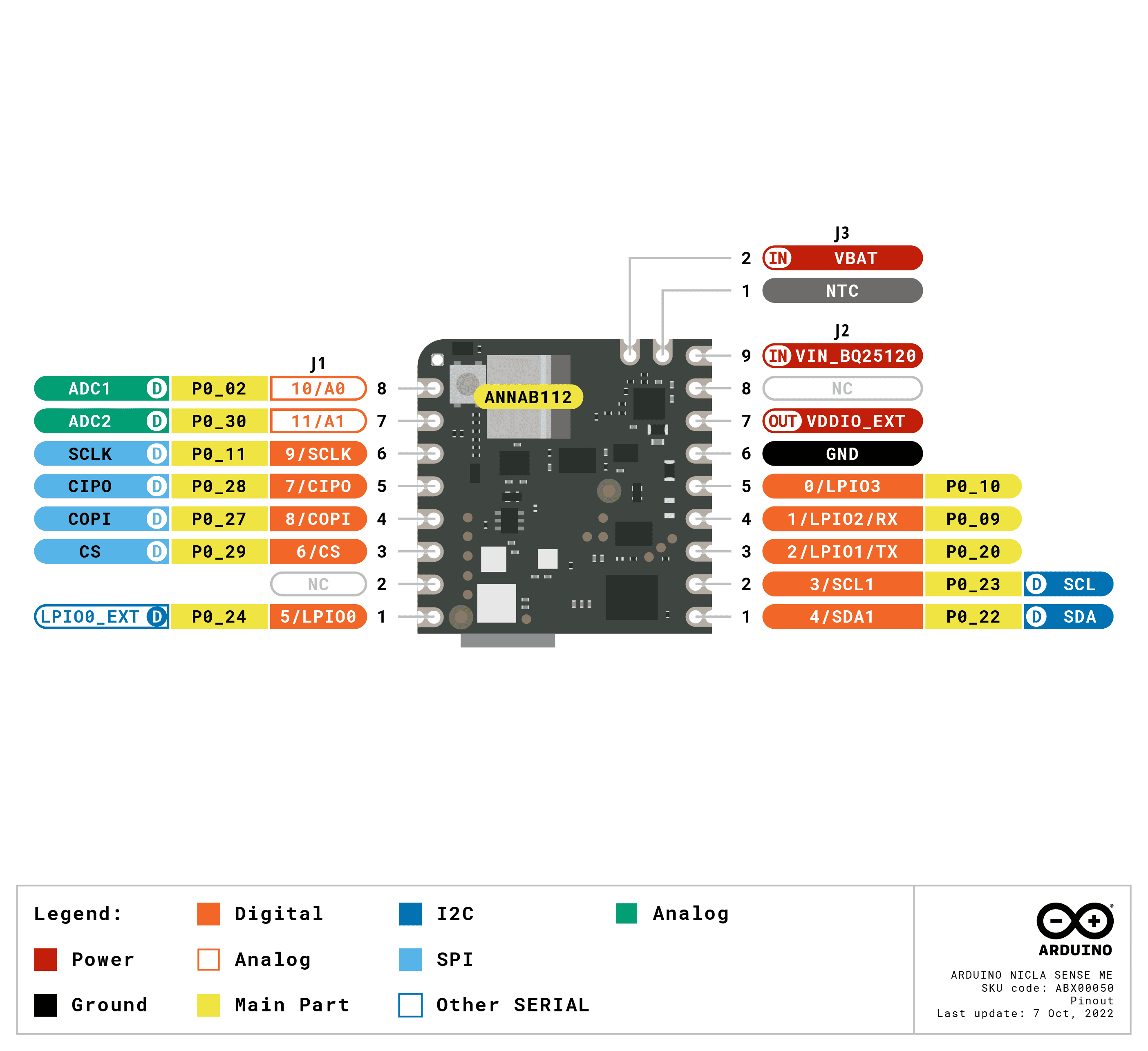 The Nicla Sense ME has twelve digital pins, mapped as follows: